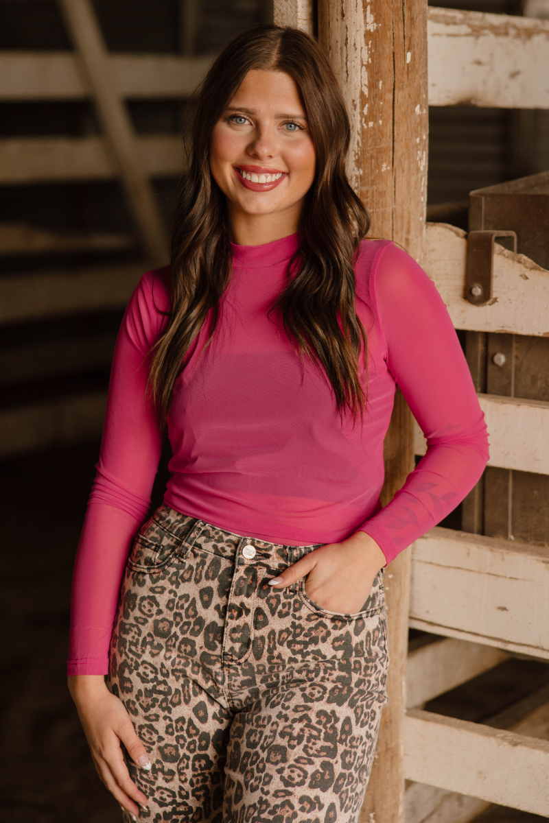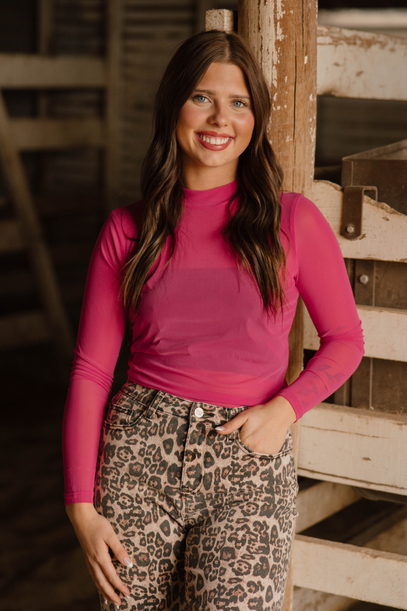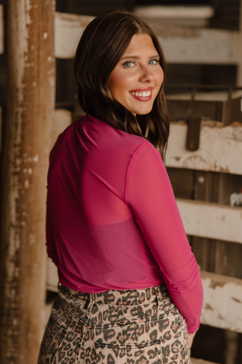 Cover up in style with Meshed Out Pink! This solid long sleeve mesh top is both playful and practical, keeping you cool while adding a pop of color to your outfit. Perfect for a fun and flirty look, this top will have you meshed up in no time!
