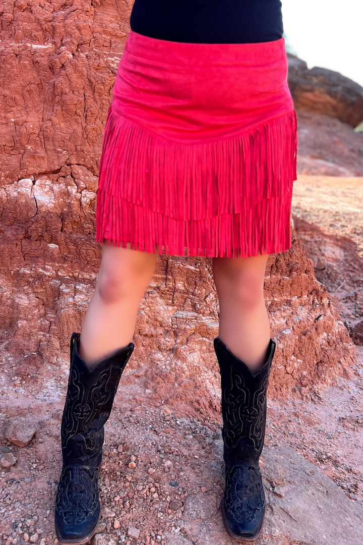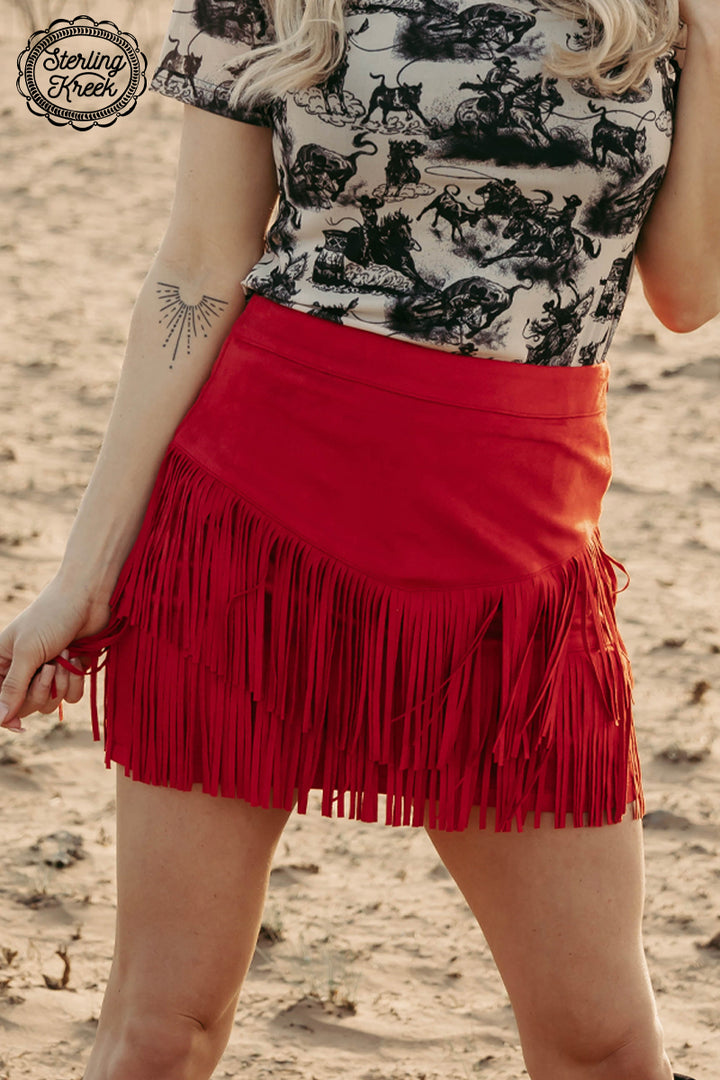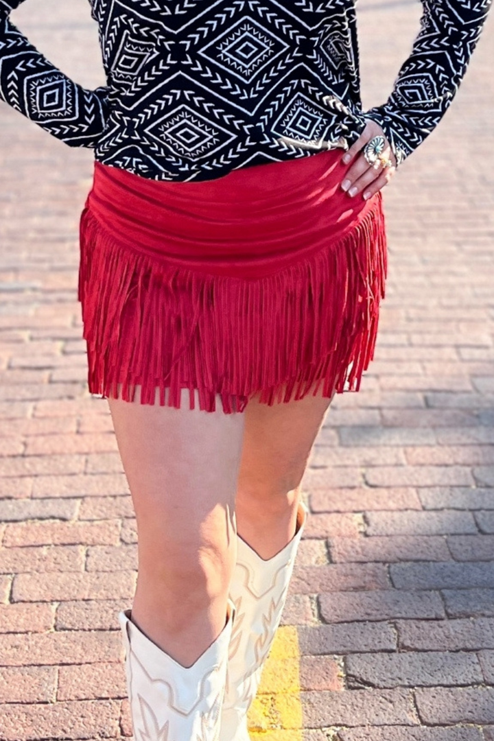 Be ready to hit the dancefloor (or, like, the grocery store) in this Fort Worth Fringe Skirt! This sassy little number is made of red fringe that swirls and twirls every time you move. Don't be shy — unleash your inner wild thing!