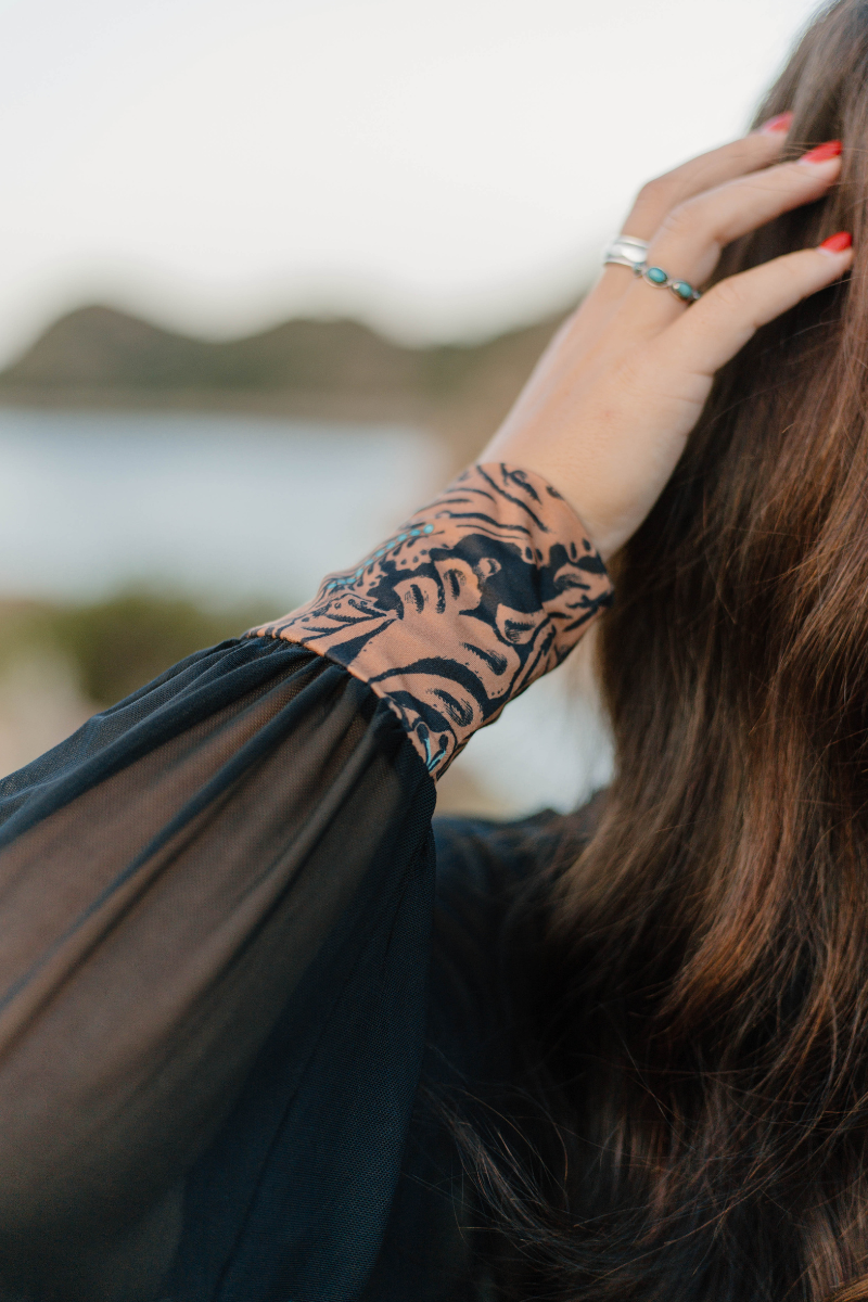 The Western Dreams Top combines a fitted tooled leather tank inside that smooths your silhouette with a flowy mesh overlay that gently conceals and flatters. The secure band at the bottom enhances your shape without restricting comfort, giving you confidence and style in one unique piece.