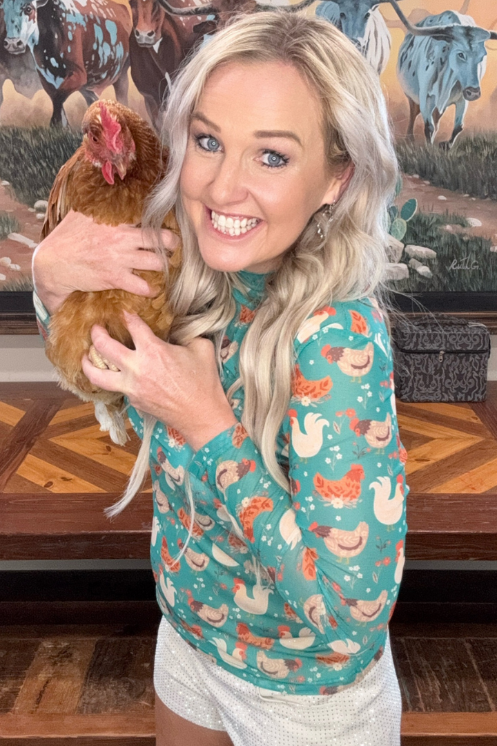 Be the envy of the flock with our Fly The Coop Mesh Top! This cute and adorable top features a stylish chicken design that will keep you comfy and looking fly. Don't be a chicken, add some fun to your wardrobe!