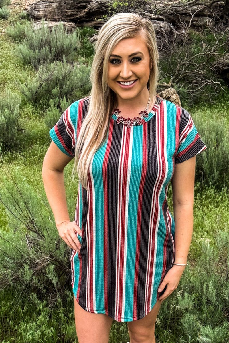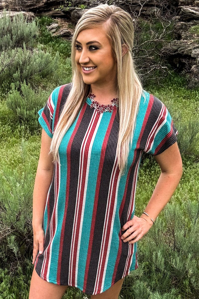 Get ready to swoon over our Oh My Darling Dress! With its vintage western stripes and flattering dress shape, this dress is perfect for dressing up or down. Made from comfy waffle knit material, you'll feel both cute and comfortable. P.S. IT HAS POCKETS!!