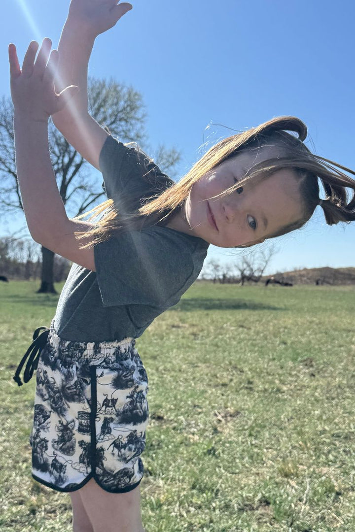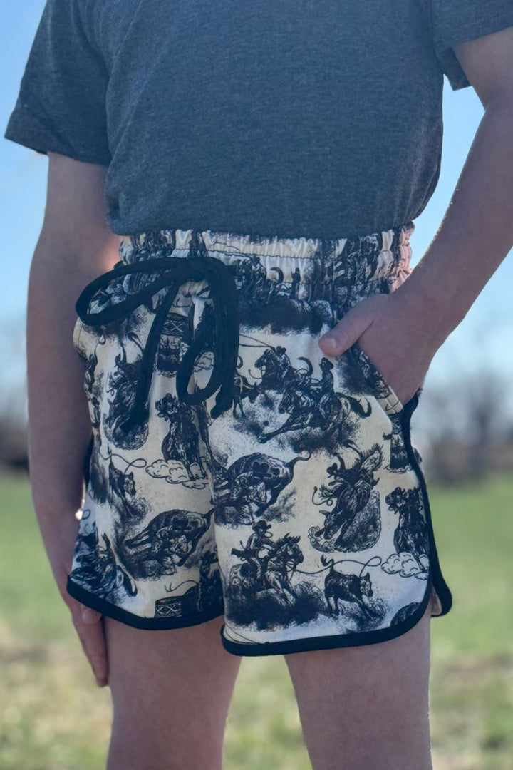 Ride the cuteness of these adorable Rodeo Road Shorts KIDS, perfect for little cowboys and cowgirls! Made from soft and comfy material, these shorts are not only fun to wear but also match perfectly with mom's Rodeo Road Shorts. Giddy up!