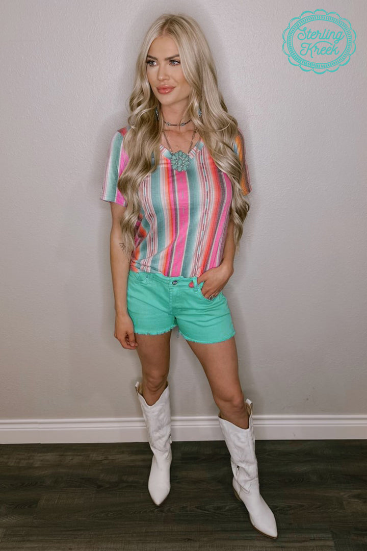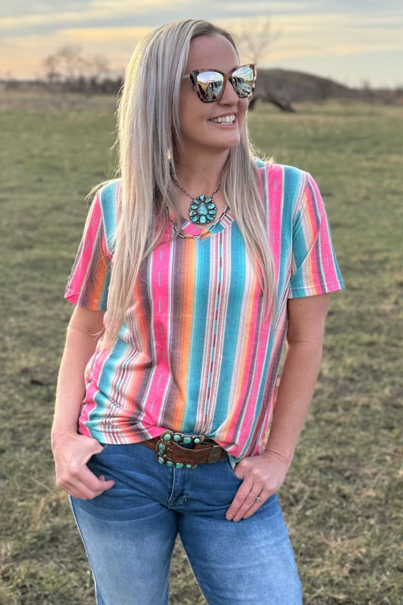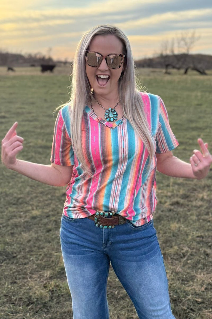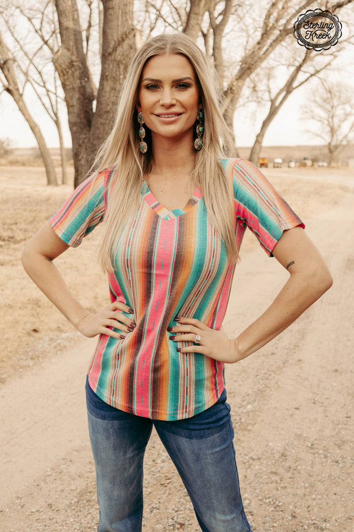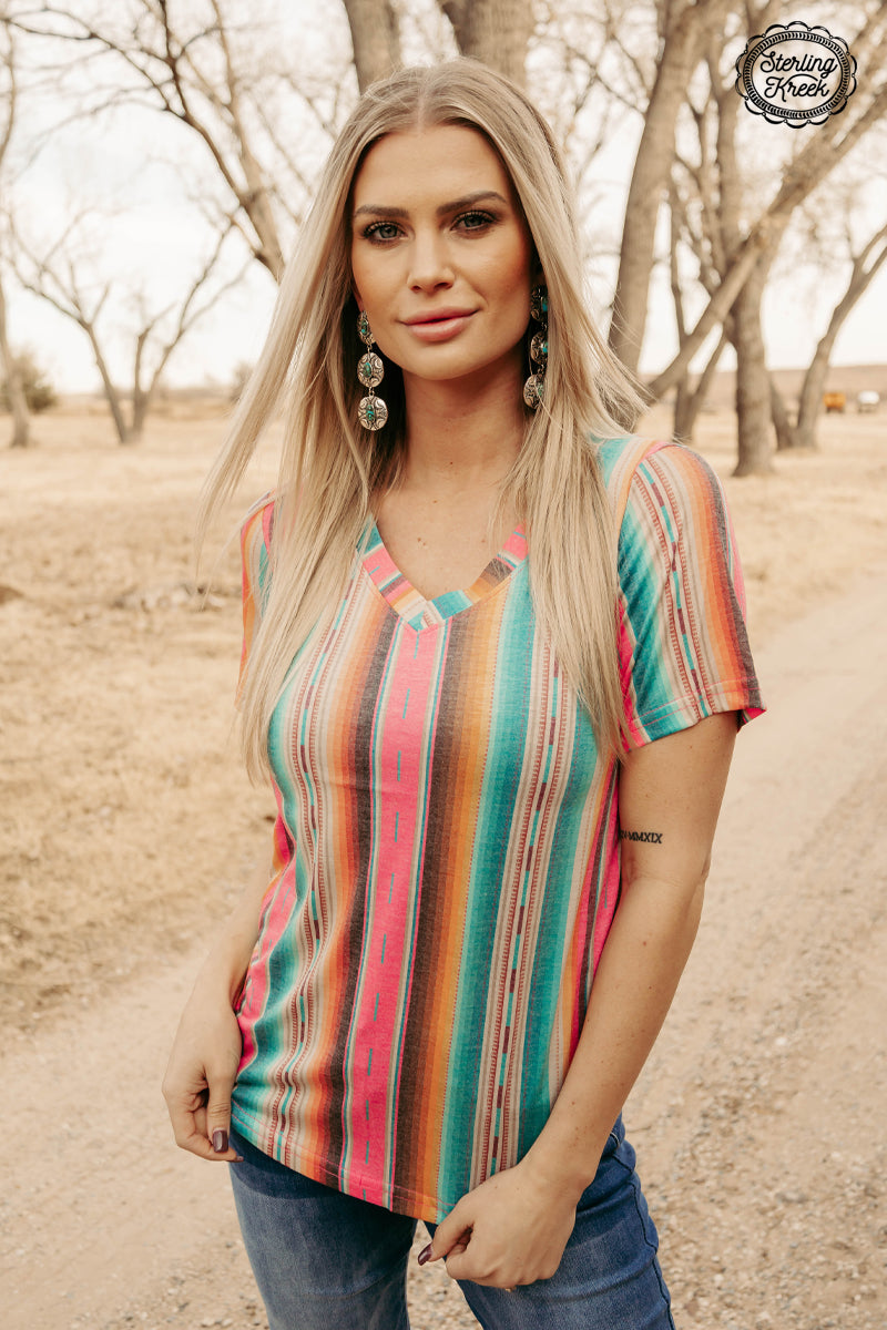 Be the hottest sun-seeker in this Summer Serape Top! This lightweight, sizzling style is the perfect way to stay looking cool whilst still feeling the warmth of the sun. With a playful serape v-neck, this top is sure to provide you with all the comfort and style you need this summer. So go ahead and make a statement!